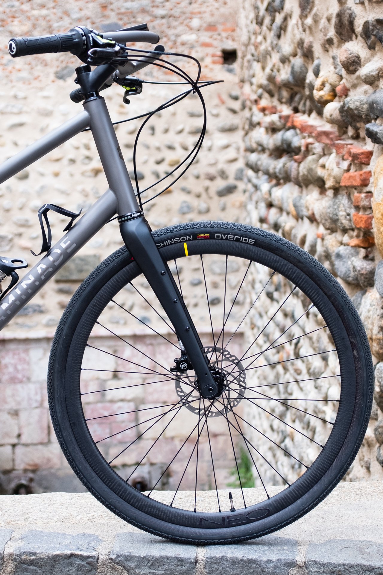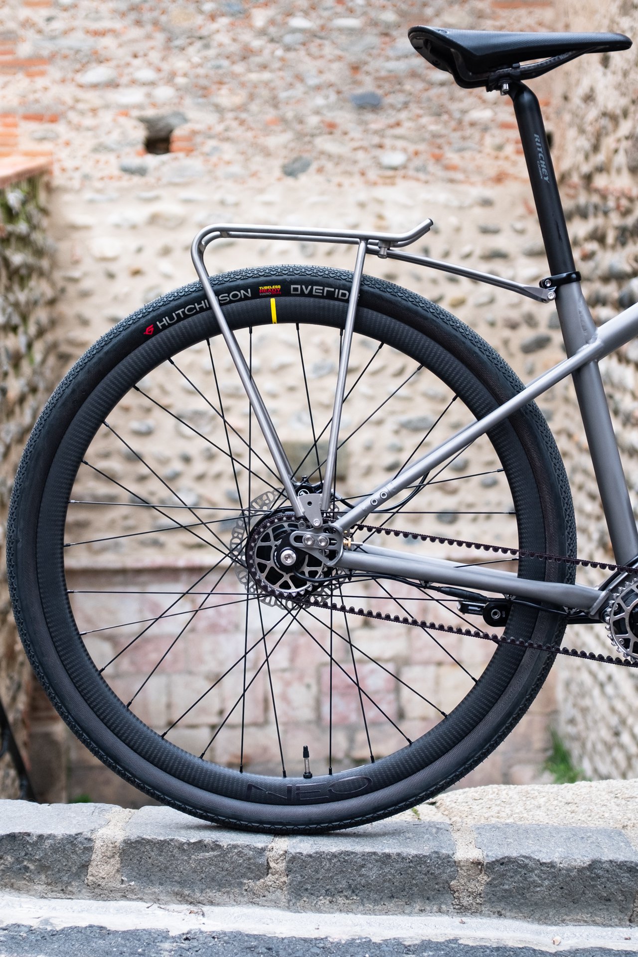 - Une paire de roues haut de gamme, avec jantes Mavic Open Pro carbone, rayonnées main par notre artisan Neo Wheels, sur moyeu avant Mavic… et moteur roue arrière Annad.