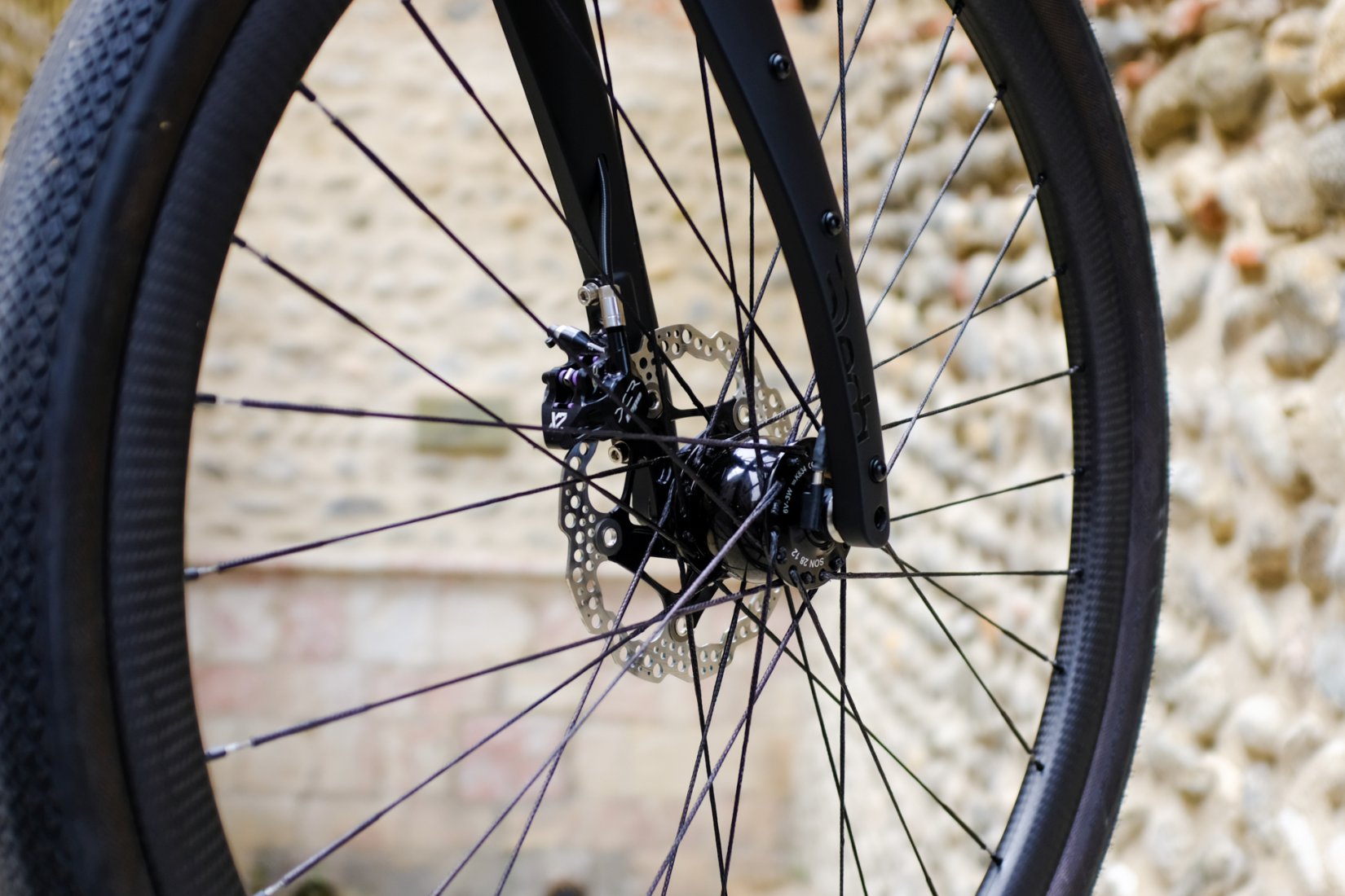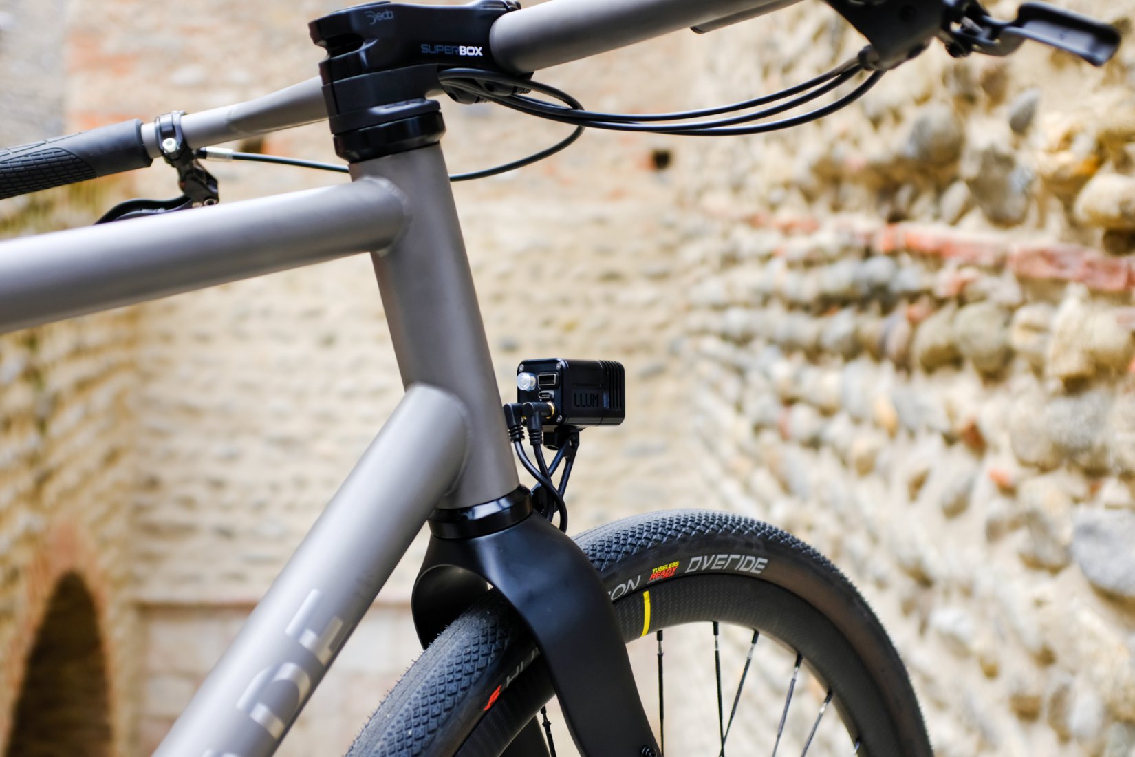 Le moyeu avant, lui, est une dynamo du fabricant SON. Couplée à notre lampe Llum, ce binôme offre la garantie d’un éclairage permanent et la liberté de recharger un GPS, un téléphone ou une batterie externe en roulant. L’autonomie, sans compromis.