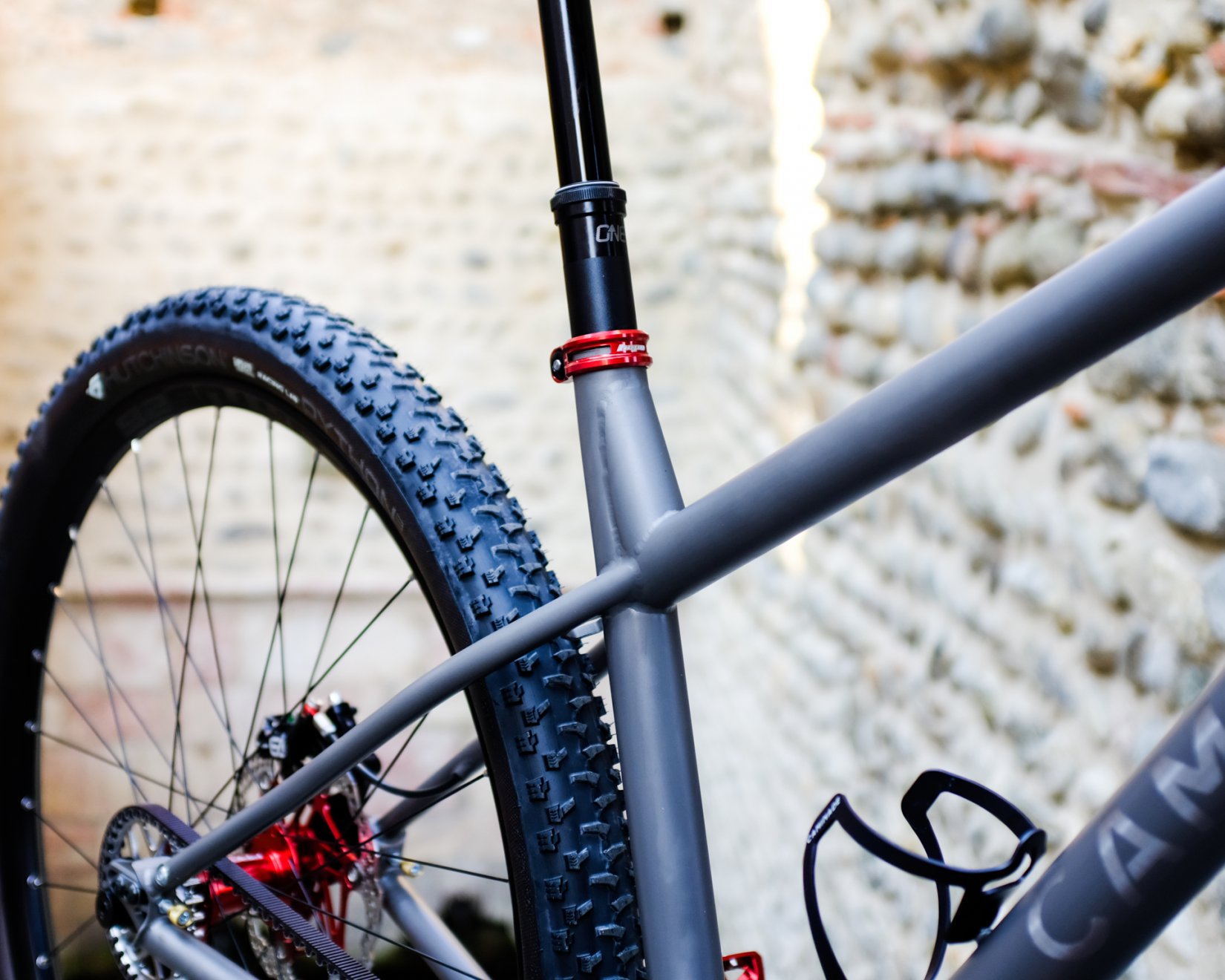 Adam ne cherchait pas un vélo standard. Sa pratique du VTT est aussi exigeante en descente qu'en montée. Robustesse, confort et géométrie sur mesure était nécessaire à l'élaboration de son projet. Le choix du titane s'est imposé naturellement pour son excellent rapport résistance/poids, sa durabilité inégalée et son confort vibratoire, idéal pour les longues sorties.